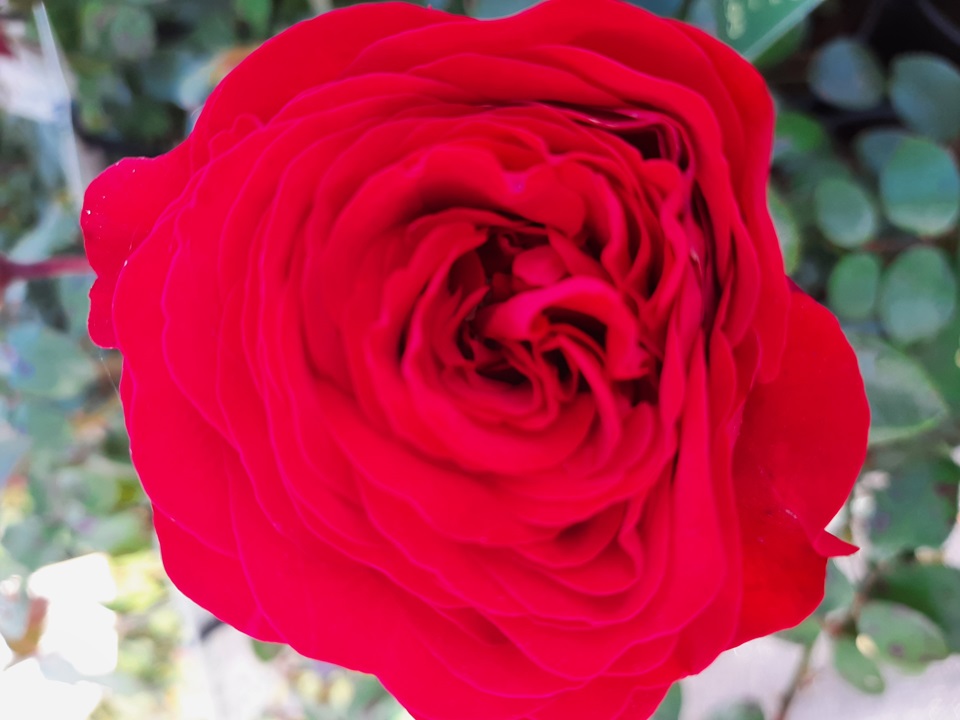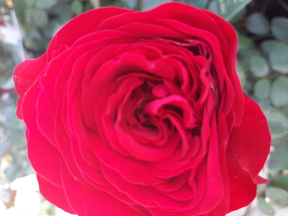 Wunderschönes Blatt aus roten Rosen mit gut gefüllten Blüten. Blühen wiederholen.