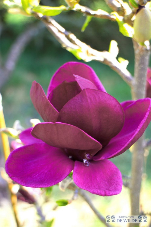 Diese Magnolie hat auffallend große Blütenknospen, aus denen schöne, burgunderrote bis violette Blüten mit runder Form entstehen. Der Baum blüht am besten in der Sonne an einem geschützten Ort. Aufgrund seiner geringen Höhe kann es auch in kleineren Gärten gepflanzt werden.