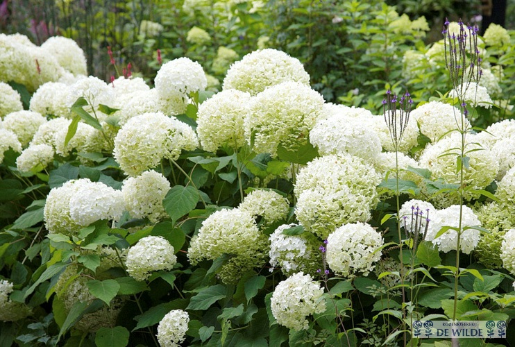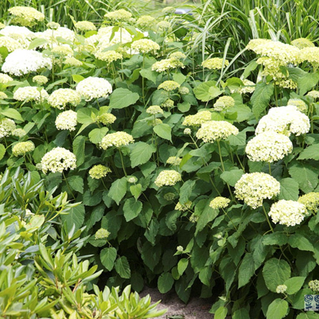 Diese weiß blühende Hortensie hat größere Blüten als ihre Altersgenossen. Die Blüten der Hortensia Annabelle fangen von zartem Grün an und verwandeln sich in reines Weiß. Die Blütezeit dauert von Ende Juni bis weit in den August hinein. Die Größe der Blüten variiert zwischen 20 und 30 Zentimetern. Die Pflanze wird eine erwachsene Größe von ca. 150 cm haben.