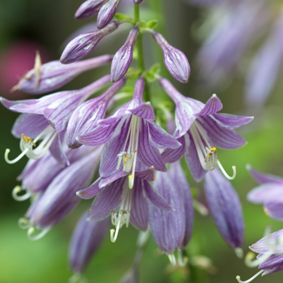 Diese Hosta 'Fortunei Hyacinthina' hat ein schmales herzförmiges Blatt, das eine grüngraue Farbe hat. Das Blatt kann eine blaugraue Farbe annehmen. Diese Hosta blüht lila Blüten, die weit über den Blättern stehen. Die Blütezeit dieser Pflanze ist von Juli bis September und kann bis zu einer Höhe von 60 bis 70 cm wachsen. Die Pflanze kann sowohl in der Sonne als auch im Schatten stehen. Wenn es in der Sonne ist, muss es einen ausreichend feuchten Boden geben.