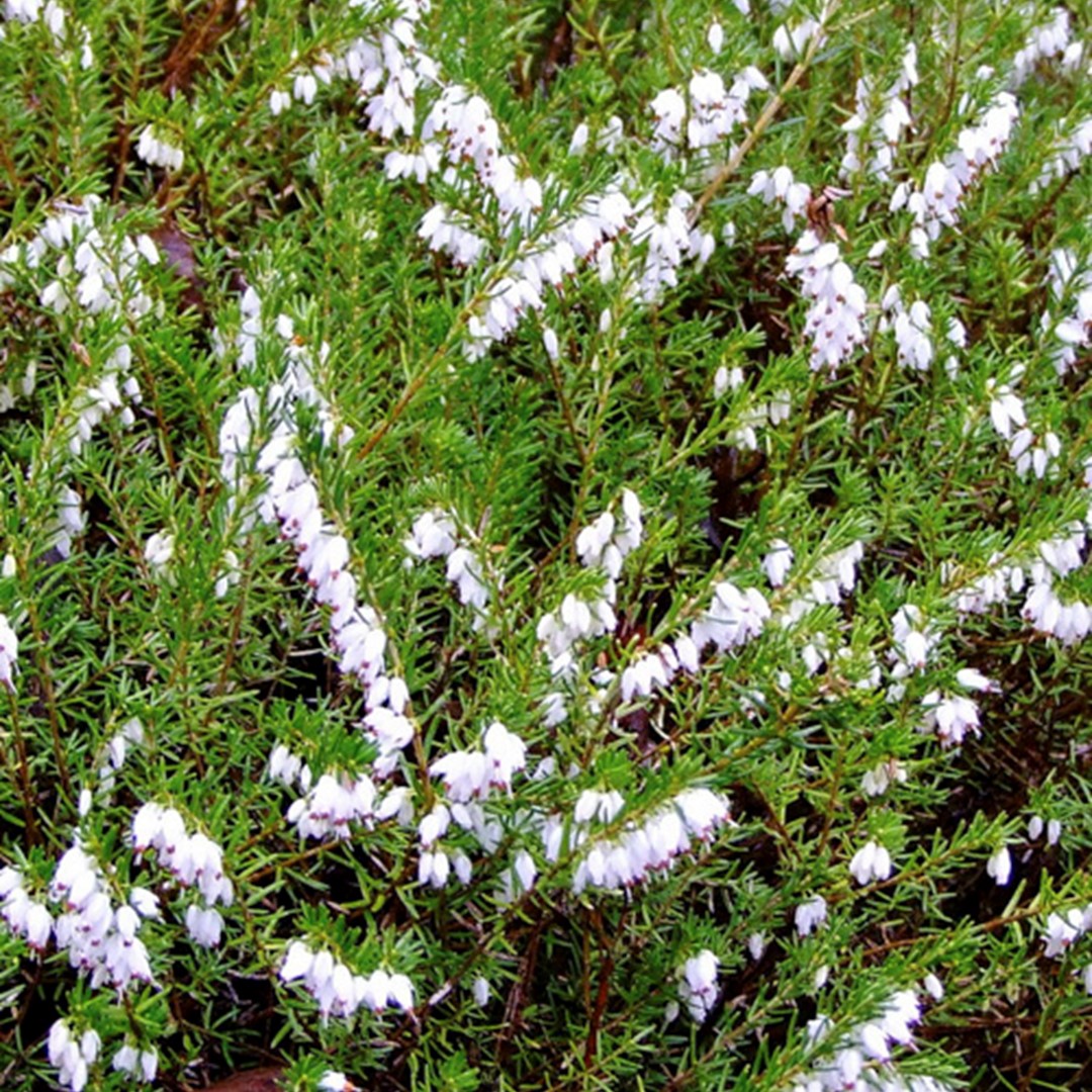 In diesem Winter blüht Heidekraut voller glockenförmiger Blüten, die cremeweiß sind. Die Blätter und Stiele sind hellgrün und bleiben auch im Winter grün. Sie können mehrere Pflanzen nebeneinander pflanzen. Es wird empfohlen, einen Pflanzabstand von ca. 30 cm einzuhalten, was ca. 10 Pflanzen pro m2 entspricht. Die 'Erica darl White Perfection' ist sehr winterhart und kann Temperaturen von bis zu -20 Grad Celsius überstehen.
