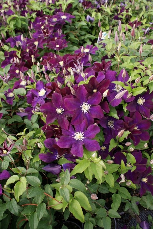 Lilarote Blüten mit einem Durchmesser von 8 bis 10 cm. Blüht von Mai bis Juni und erneut von Juli bis August. Nach der ersten Blüte leicht zurückschneiden und alte und schlechte Zweige entfernen.