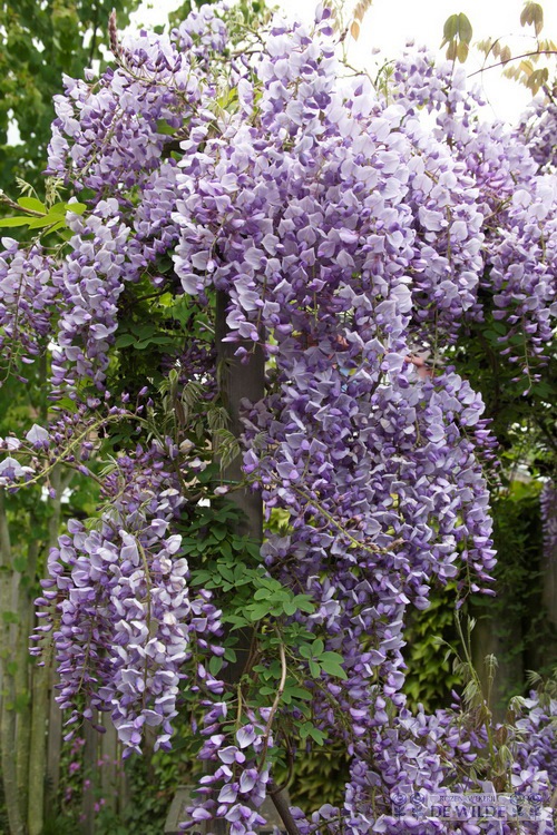 Dieser blaue Regen kann leicht bis zu 4 Meter hoch werden. Die Blätter sind grün und die Blüten sind lila lila und wachsen in großen Büscheln. Die 'Wisteria Sinensis Caroline' blüht in den Monaten Mai, Juni und Juli. Die Kletterpflanze wächst am besten an einem Standort im Halbschatten oder in der Sonne, und Sie können die Pflanze zum Wachsen von Wänden und Zäunen verwenden.