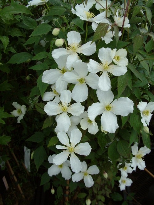 Weiße Blüte mit einem Durchmesser von 6 bis 8 Zentimetern. Blüht von April bis Mai. Nach der Blüte auf eine Höhe von 200 cm zurückschneiden. Duftend.