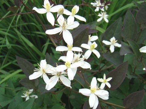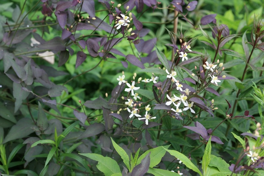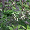 Spezielle Clematis mit rosa / lila Stielen und kleinen weißen Blüten von ca. 2 cm. Diese besondere Pflanze wächst bis zu einer Höhe von etwa 1 Meter und ist in der Sonne sehr glücklich. Die Blütezeit der 'Recta Purpurea' dauert von Juli bis August und soll im Frühjahr auf eine Höhe von ca. 10 cm beschnitten werden. Duftend.