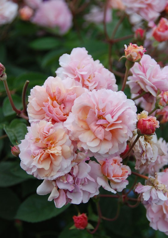 Bei 'Cornelia' wachsen die kleinen, klassischen Blüten in einer Rosettenform in großen Büscheln. Die Blüten sind kupfer- bis apricotfarben und verfärben sich pink. Eine starke Pflanze mit wiederstandfähigen, dunkelgrünen Blättern. Sehr aromatisch und mit einer langen Blütezeit. Als Stammrose ein echter Blickfänger.