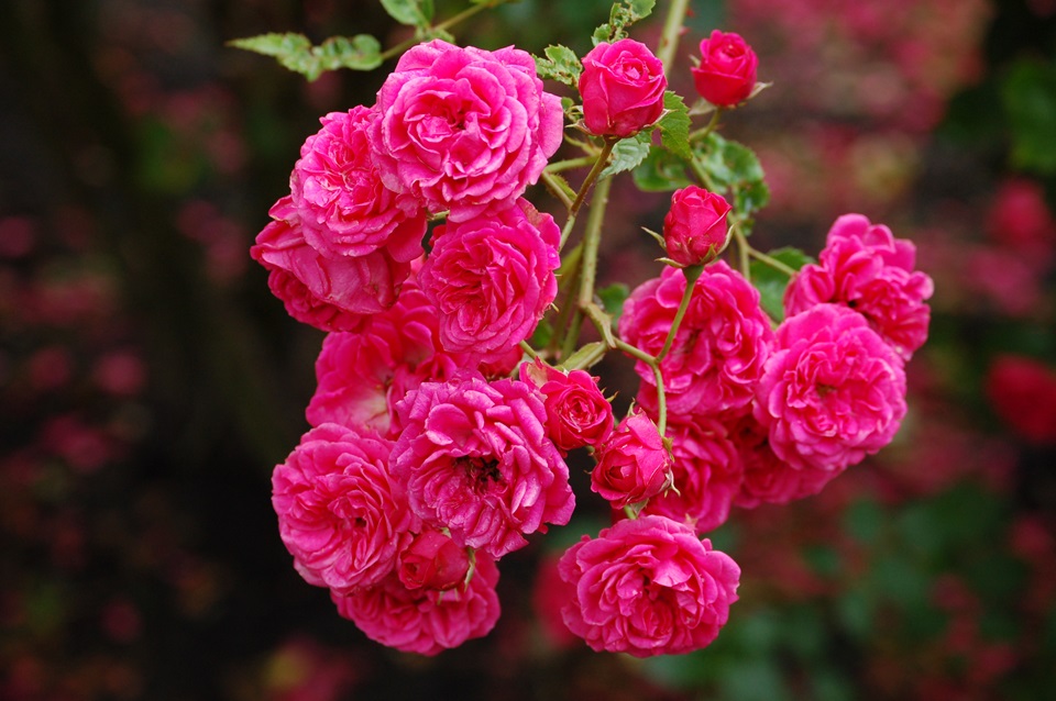 Dies ist eine der aufregendsten und am schnellsten wachsenden aller Rosen. Er trägt kleine, gefüllte, wohlgeformten Blüten in großen Clustern. Sie verbreiten einen schwachen Geruch und sind tief rosa rot. Das Laub ist resistent gegen Krankheiten und glänzend hellgrün. Es ist ein re-gende Pflanze, und es kann auch verwendet als niedrige Kletterrose werden.