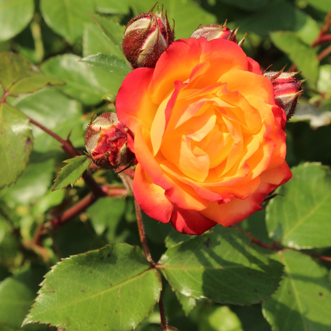 Eine außergewöhnlich reichblühende Spray-Rose mit mittelgroßen Blüten in einem warmen Gelb das orange changiert. Sie hat einen zarten, würziger Duft und ist resistent gegen Krankheiten. Eine kräftige, buschige Pflanze mit glänzenden, ledrigen Blättern.