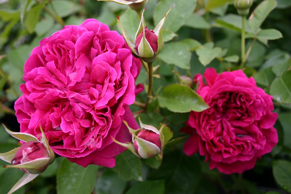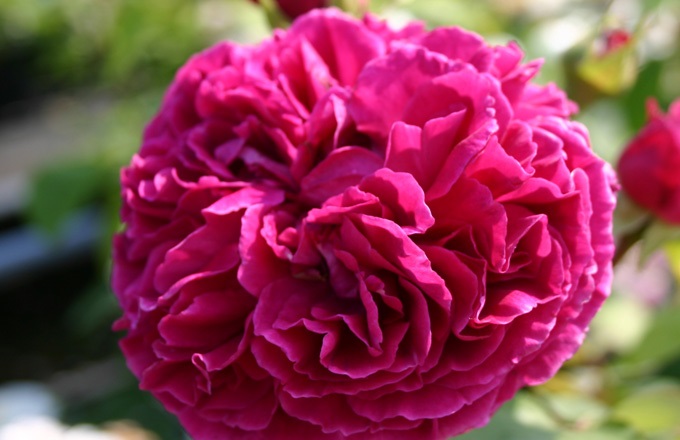 Die "William Shakespeare 2000" ist ohne Zweifel die derzeit beste purpurrote englische Rose. Schöne Blüten in sattem, dunklem Samtrot, die sich allmählich in ein ebenso intensives Purpur verwandeln. Ordentliches, aufsteigendes Wachstum; Jeder Zweig trägt mehrere Blüten. Diese Rose hat den starken, warmen, altmodischen Duft, den wir (manchmal vergeblich) für tiefrote Rosen erwarten. Sehr krankheitsresistent. Pflanze 3 Rosen pro m2.