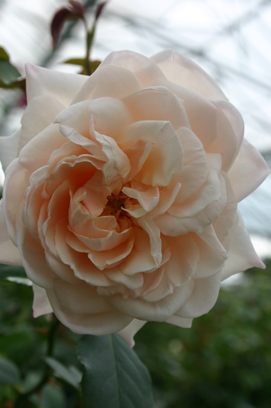 Diese Kletterrose „Penny Lane“ hat große, champagnerfarbene Blüten mit wunderschönen, lässig gefalteten Blütenblättern. Ein guter Dauerblüher mit dichten Blättern. Angenehmer Duf