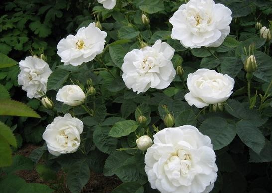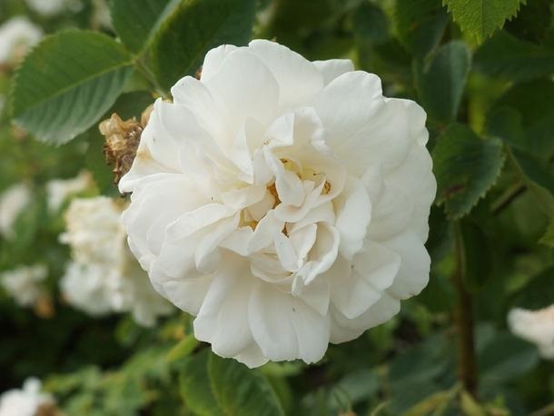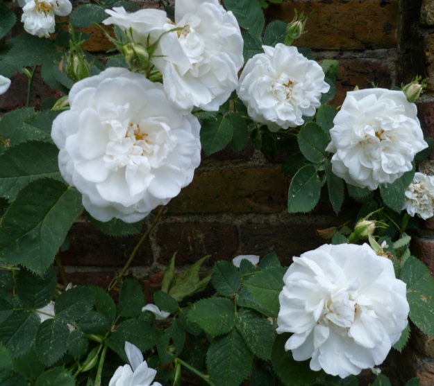 Die gefüllten Blüten der 'Alba Maxima' sind anfangs rosa, verblühen dann