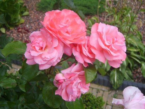 Diese Rose hat unzählbar viele helle, kugelförmige Blüten auf langen, aufrechten Stielen, mit großen, glänzenden Blättern. Besonders gut geeignet für hintere Rabatte oder für einen Platz, wo andere Rosen vielleicht nicht wachsen können. Unverwüstlich.