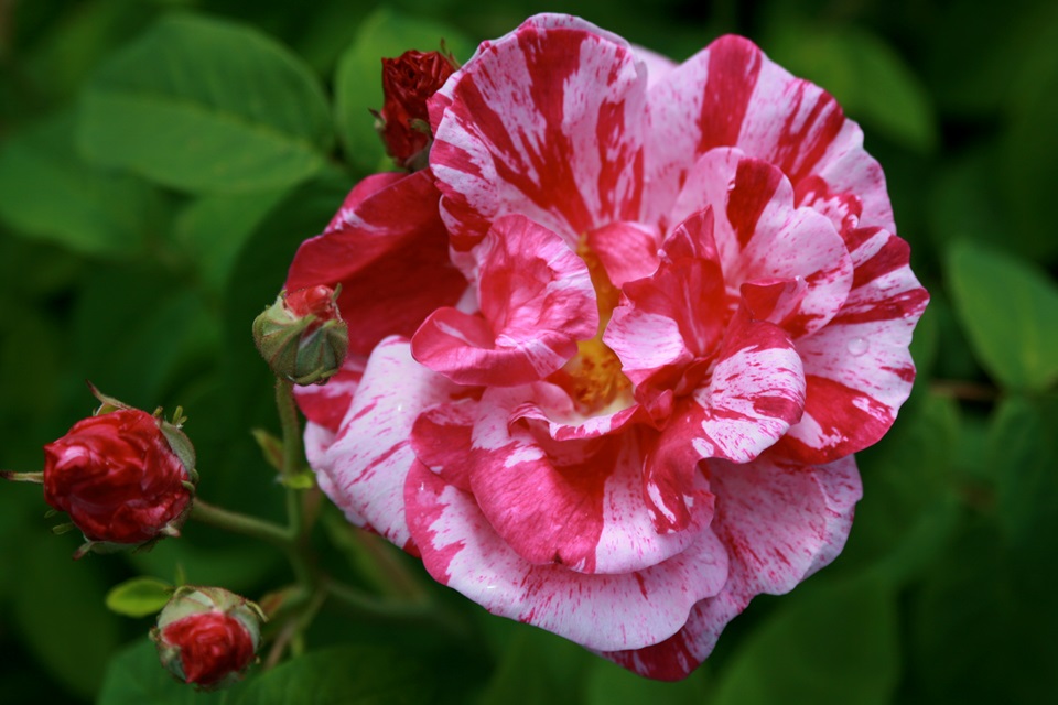 (Rosa Mundi) Ein Strauch von guter Qualität mit roten und weißen