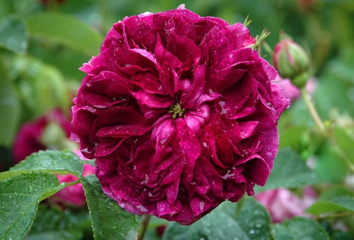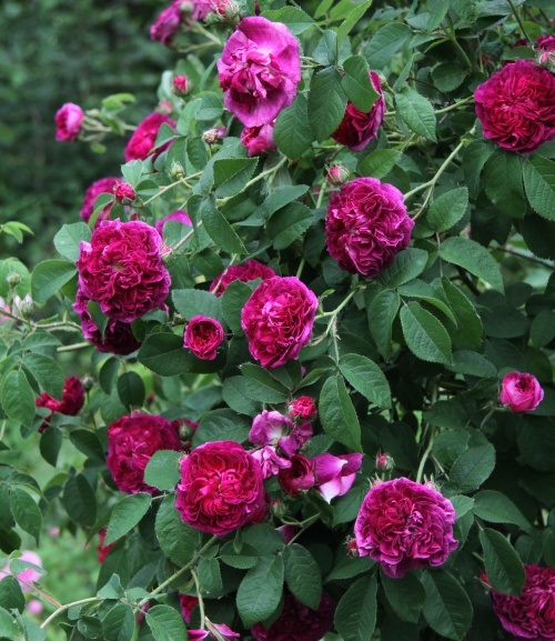 'Charles de Mills' ist ein schnell wachsender Gallicaroos mit besonders großen und üppigen Blüten. Sehr volle Blüten mit vielen aufeinanderfolgenden Blütenblättern und einer einzigartigen Formation, die so flach ist, dass die Blüten einen Schnitteffekt erhalten. Die Farbe ist warm purpurrot mit einem Hauch von Lila auf den älteren Blüten.