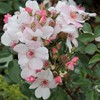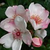Eine besonders schöne, einfache Blüte in Pastellrosa-Weiß ziert diese Pflanze. Einen schöneren Kontrast zu den dunkelgrünen Blättern findet man bei keiner anderen! Diese Rose kommt in kleinen Gruppen gut zur Geltung.