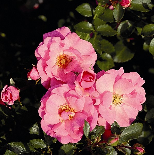 Diese bodendeckende Rose hat tief-rosafarbene, halbvolle Blüten mit hübschen Herzen in einem warmen Orange-Ton, sie blüht durchgehend und hat das ADR®-Prädikat.