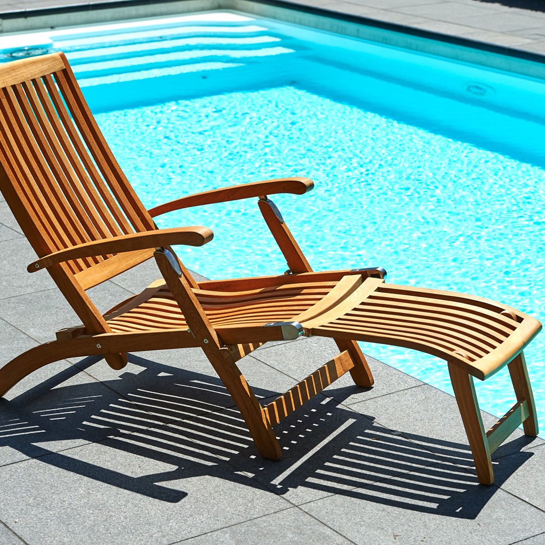 Dank der verstellbaren Rückenlehne und des bequemen Fußschemels eignet sich der Alexandra Liegestuhl ideal zum Entspannen.