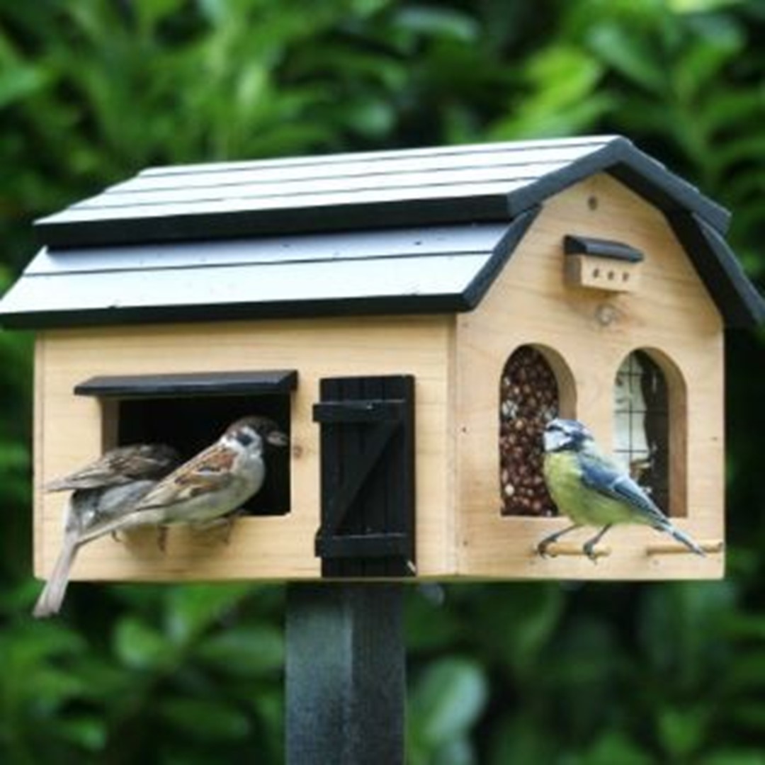 Foderlada Rustik (Voederhuisje) Mit dem geräumigen Futterschuppen können Sie viele verschiedene Vogelarten in Ihren Garten locken. Es gibt Platz für 4 verschiedene Arten von Lebensmitteln, wie Fettbällchen, Erdnüsse, Sonnenblumenkerne, Lebensmittelkekse. Foderlada Rustik (Voederhuisje) Foderlada: Futterschuppen und Vogelfutterhäuschen Je größer die Variation des Futters, desto mehr Vogelarten besuchen den Futterplatz. Darüber hinaus zieht eine Vogelart die andere an. Dadurch wird der Futterstall zu einer echten Vogelfalle und bringt Leben und Bewegung in Ihren Garten. Die Futterspender bieten einen guten Schutz vor Schnee und Regen und außerdem sind die kleinen Gartenvögel trocken und können ihre Mahlzeiten ruhig genießen, da es für die großen Vögel, wie Elster und Krähe, schwierig ist, Futter zu ergattern und aufzunehmen. Der Futterschuppen enthält viel Futter und muss nicht immer nachgefüllt werden. Wenn jedoch nachgefüllt werden muss, muss das Dach angehoben und das Futterhaus mit neuem Futter gefüllt werden. Die Reinigung ist ebenfalls einfach und das Risiko von Krankheiten und Kontaminationen zwischen Vögeln wird minimiert, da der Vogelkot auf den Boden und nicht auf das Futterbrett fällt. Montage: Platzieren Sie den Futterschuppen auf einer Stange im Garten oder vor dem Fenster auf unserem drehbaren Schwenkarm, wenn Sie nicht durch den Regen / Schnee laufen möchten, um den Schuppen mit neuem Futter aufzufüllen. Montageplatte und Schrauben sind zusammen mit einer Montageanleitung im Lieferumfang enthalten. Abmessungen: 250x320x215mm BxTxH Gewicht: 2100 g Material: Lärchenholz; Lebensmittelbehälter: 5 Liter
