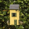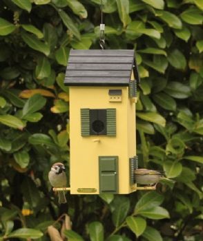 Das Townhouse kann mit 2,2 Litern Vogelfutter gefüllt werden. Besonders geeignet ist schalenfreies Vogelfutter wie Wildvogel-Müsli. Peel-free Vogelfutter ist ideal für die Fütterung in der Stadt, da es keine Verwirrung verursacht und neue aufregende Vogelarten in die Futterstelle lockt. Die vier Futteröffnungen sind so gestaltet, dass die kleinen Vögel leicht zum Futter finden und die Vögel mit Hilfe der Sitzstangen bequem und hygienisch fressen können, ohne im Futter zu sitzen oder das Futter mit ihren Exkrementen zu kontaminieren. Die Sitzstangen sind so kurz, dass die großen Vogelarten keinen Halt haben und die kleinen Vögel ihre Mahlzeiten ungestört genießen können. Das Futter ist gegen Regen, Schnee und Wind geschützt und fällt nicht heraus, wenn die Futtermaschine durch den Wind hin und her schwingt. Das Townhouse wurde in Schweden entwickelt und handgefertigt aus wetterfestem Lärchenholz mit Dachbedeckung auf dem Dach. Das Füllen des Rathauses mit Lebensmitteln ist sehr einfach, indem die Splinte entfernt, das Dach angehoben und das Essen in das Haus gegossen wird. Der Feeder benötigt keinen festen Montagepunkt, kann aber mit Hilfe der mitgelieferten Aufhängeschnur einfach an einem Ast oder einem Haken am Balkon aufgehängt werden. Abmessungen: 150 mm B x 150 mm T x 300 mm H Gewicht: 850 Gramm Material: Lärchenholz Lebensmittelbehälter: 2,2 Liter