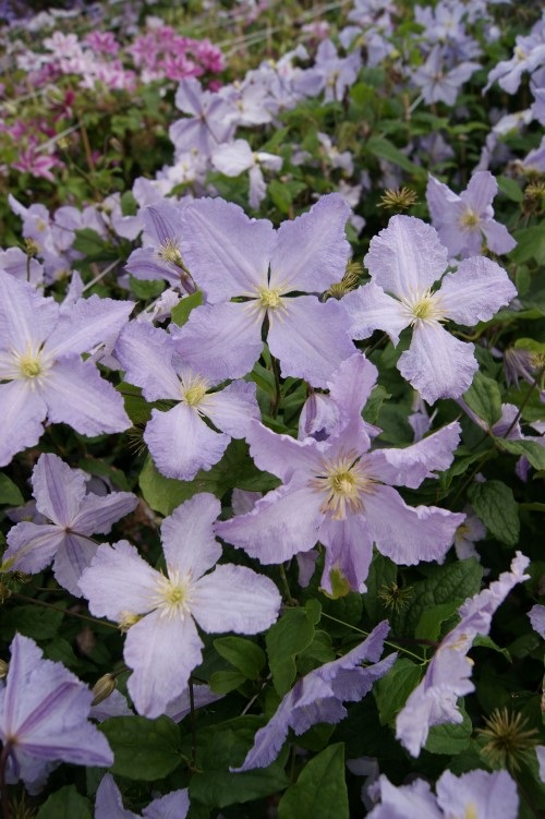 Light violet colored flowers with a diameter of 8 to 10 cm. The clematis 'Blekitny Aniol' flowers from June to September and should be pruned to a height of 25 cm in the spring.