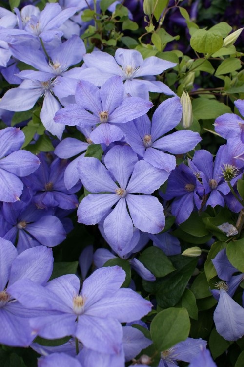 The clematis 'Mrs Cholmondeley' has soft blue flowers with a diameter of 10 to 12 cm. The plant blooms in 2 periods; from May to June and from July to August. After the first flowering, prune lightly again and remove old and bad branches in order to promote the second flowering period.