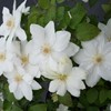 This plant blooms large cream-white flowers with a diameter of approximately 12 cm. The clematis 'Mrs George Jackman' has 2 flowering periods from May to June and from July to August. After the first flowering period, prune the plant slightly and remove bad and dead branches, in order to promote the second flowering period.