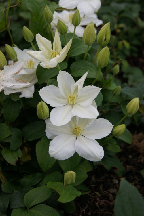 Diameter of this white flower is 6-12 cm. Prune to a height of 50 cm in March. For further information see pruning text from Patens group.
