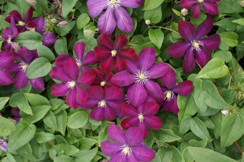 Large purple-red flowers with a diameter of 8 to 10 cm. Blooms from May to June and from July to August. After the first flowering, prune lightly and remove old and bad branches.