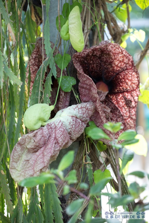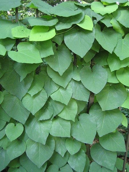 .Aristolochia durior is mainly used because of its beautiful heart-shaped leaves that can reach a diameter of 25 cm. Under the leaves in the period May-June there are approximately 4 cm large, yellow-green pipe-shaped flowers.