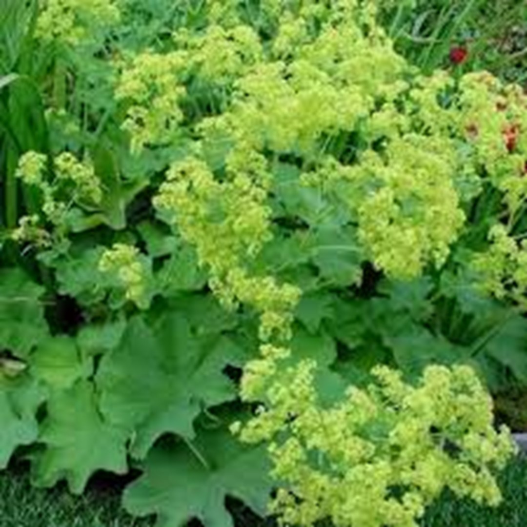 The 'Alchemilla Mollis' Robustica, also known as the women's mantle, blooms in the period from May to August. When the plant is in bloom, yellow / greenish flowers appear above the leaves. These leaves have a gray-green color and hold the raindrops after a rain shower, causing these raindrops to lie on the leaves. The women's mantle can be placed in both sunny and shady places.