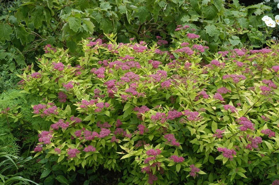 The most important characteristic of this shrub is the golden-yellow to bronze-colored leaves. The leaf turns discolouring to bright yellow after spring. The plant bears dark pink flowers. This plant prefers a place in the sun. You can prune it strongly in the spring (April), but this is not necessary. However, if you do not prune it, the number of flowers decreases and they also become smaller.