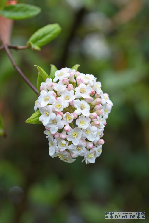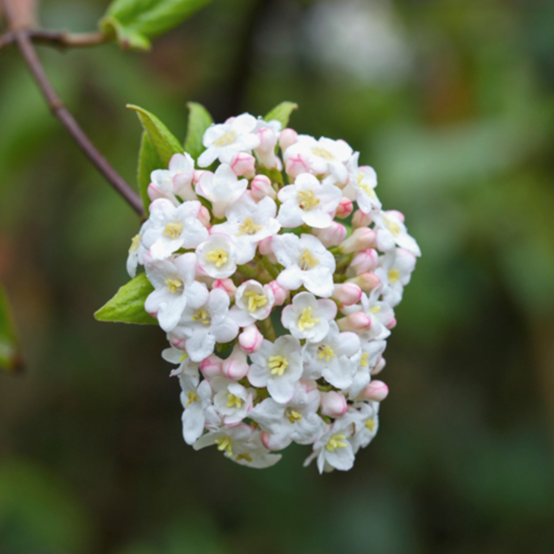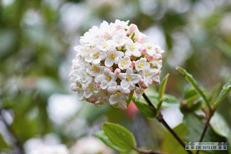 The flowers of this Snowball change from pink to white and smell delicious. The shrub bears deep green, oval-shaped leaves. The plant is hardy and can be placed in the sun or light shade.