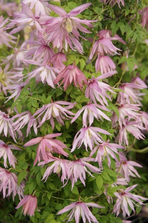 This clematis blooms many small pink flowers that are 4 to 5 cm in size. The height of the plant is 200 cm. And may be pruned back to 100 cm after flowering.
