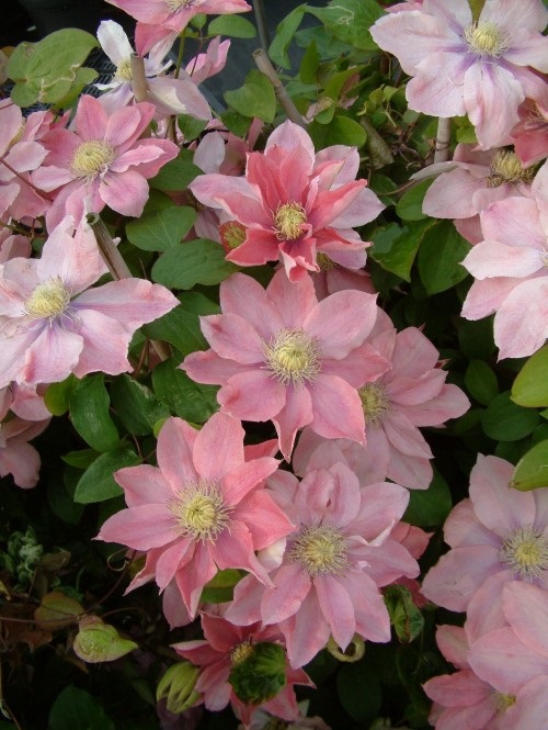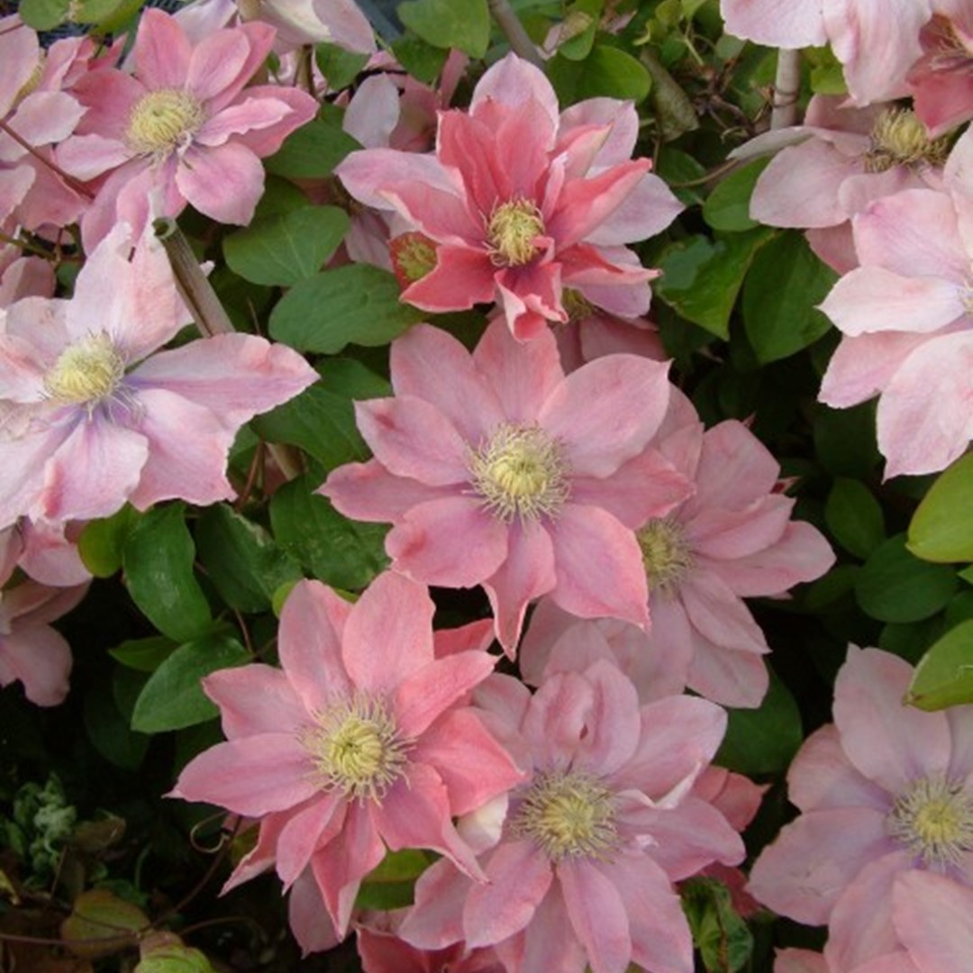 The clematis 'Little Mermaid' is full of pink flowers, with a size of 8 to 10 cm. This clematis has 2 flowering periods, namely from June to July and from July to August. After the first flowering period, lightly prune to approximately 75 cm.