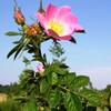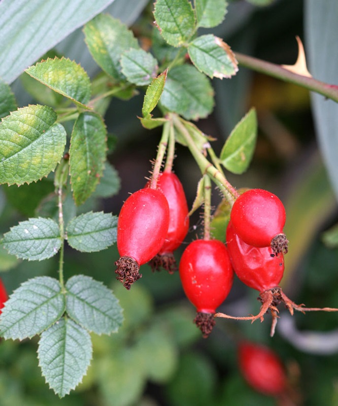 The Rosa 'Rubiginosa' comes naturally from the Netherlands and is also called 'Egelantier'. The plant blooms from June to August with pink-red flowers that are white in the middle. The flowering wild rose smells of apples and orange bottles will appear in the fall.