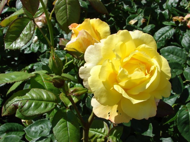 The 'Chinatown' rose blooms with soft yellow, thickly filled flowers that bloom in clusters and scents of peaches. It is a grateful rose, which blooms well, but has some stiff branches. The rose becomes approximately 250 cm high and can reach 100 cm wide.
