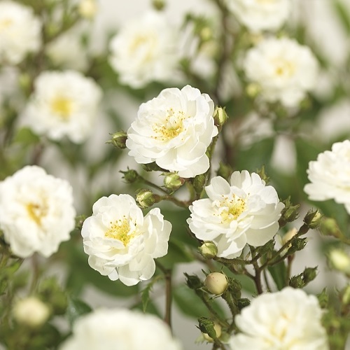 The branches of this standard rose grow downwards with a little help; very attractive appearance. Very rewarding, continuous flower with beautiful white flowers.