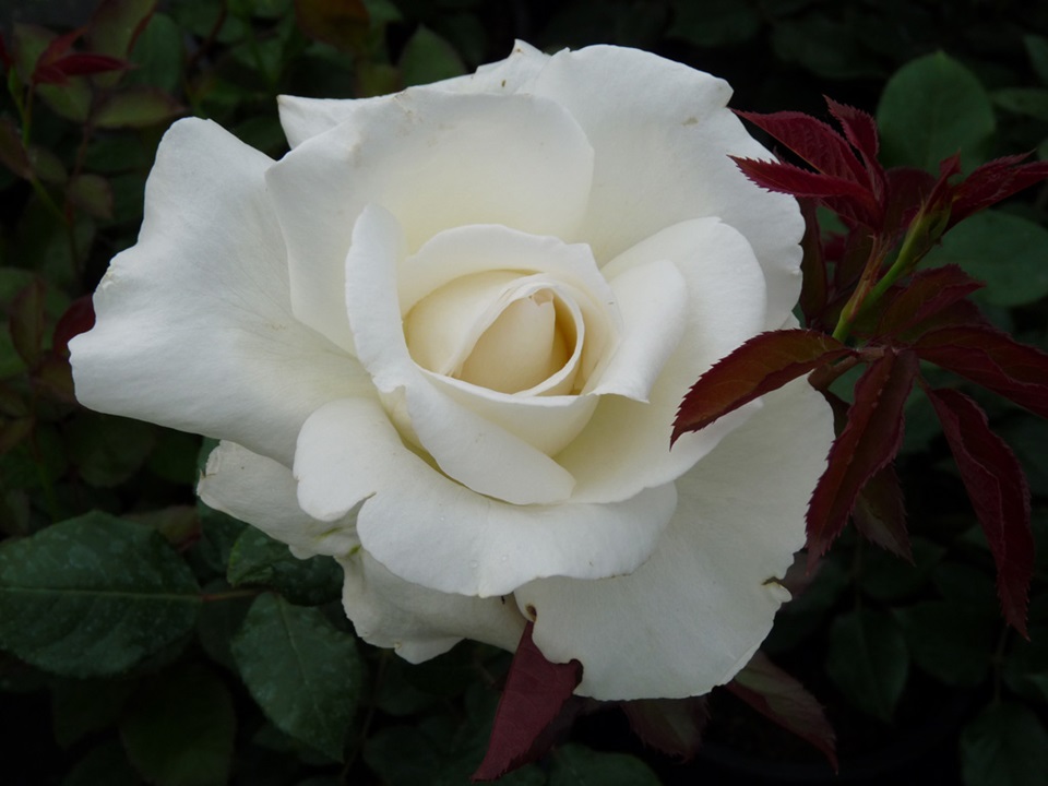 An excellently formed pure white rose that can withstand the elements. Strong growth. Light green, half shiny leaf.