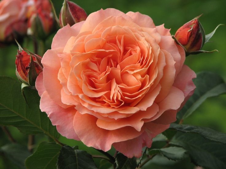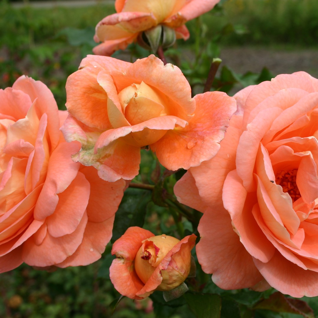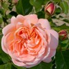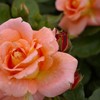 An upright rose with fragrant, large flowers. The rose is apricot orange