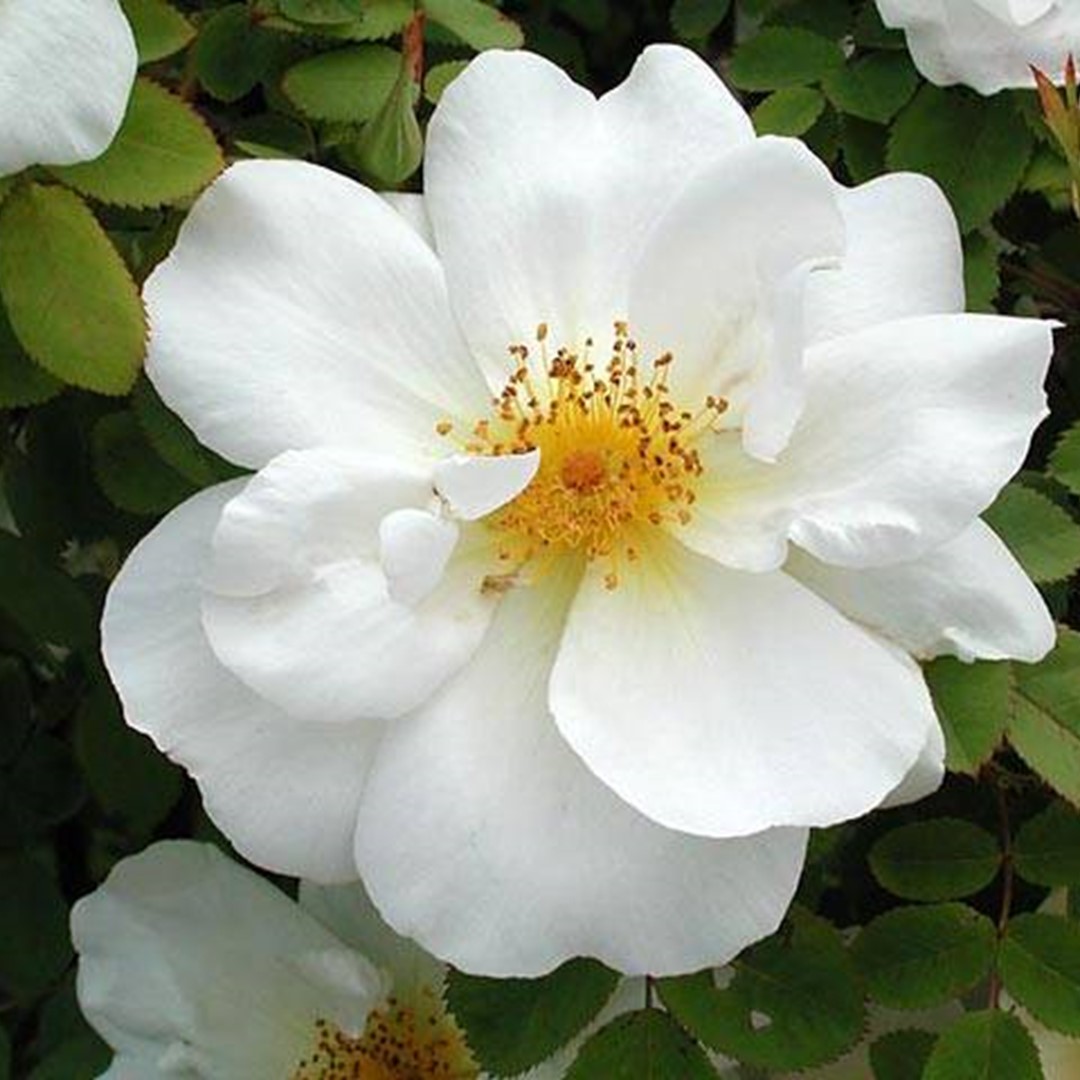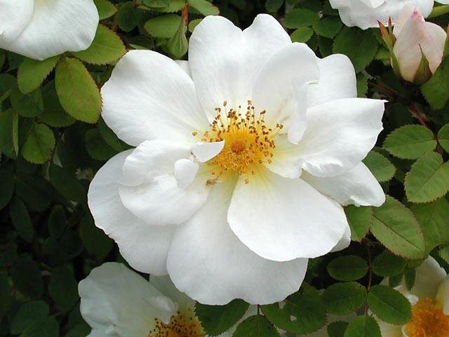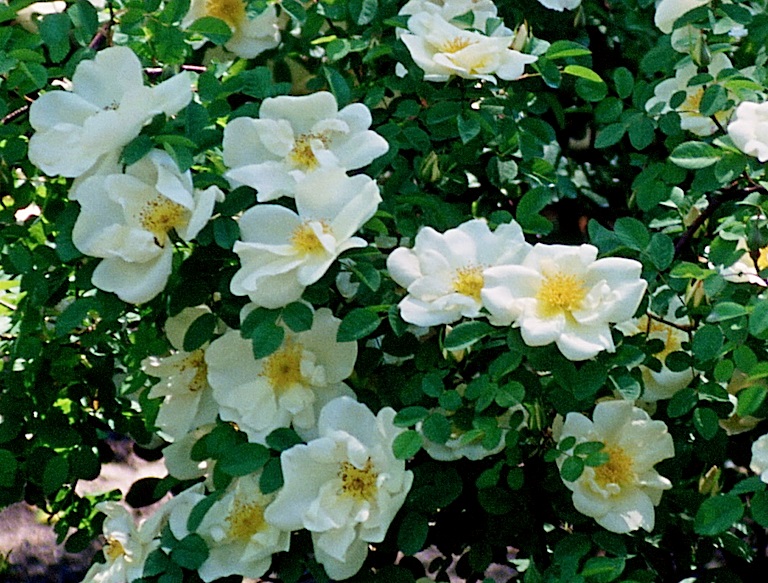 Half full, cream white flowers with a radius of about 10 cm with yellow