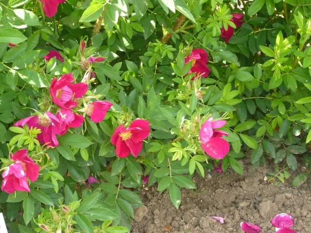 The 'Rote Hannover' is almost the same as 'Mariae Graebneriae' only in red. The rose is a very strong rose with a long flowering period and beautiful bottels. The plant is slightly scented and blooms from May to October. In the fall, the leaves turn dark yellow to orange-red. Plant 2 roses per m2.