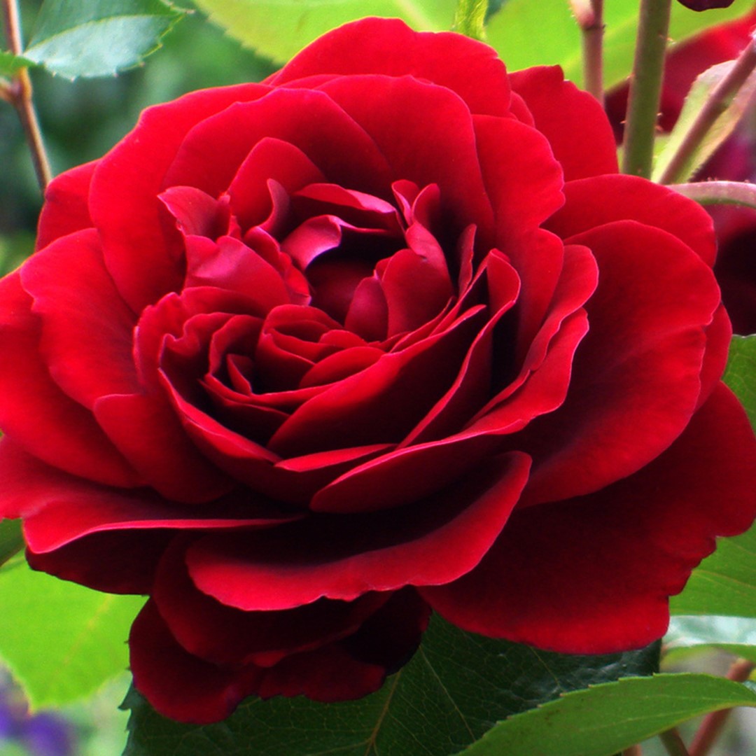 The 'Amadeus' rose blooms with blood-red, non-discoloring flowers. The flowers are very large and filled and have a light scent. The plant is a very strong, disease-resistant species. This climbing rose can easily grow to a height of approximately 250 cm.