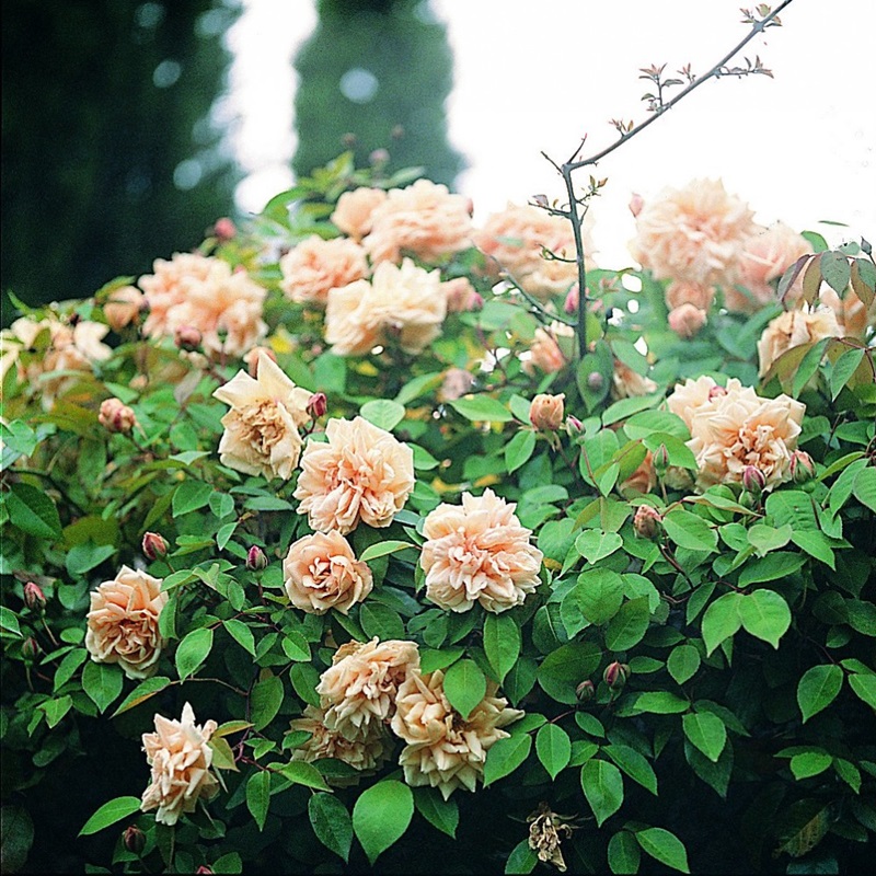 and later shelf. Pale yellow, sometimes tinged with pink and gold. Blooms early and long, rich scent.