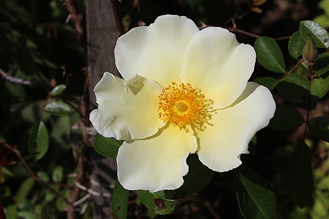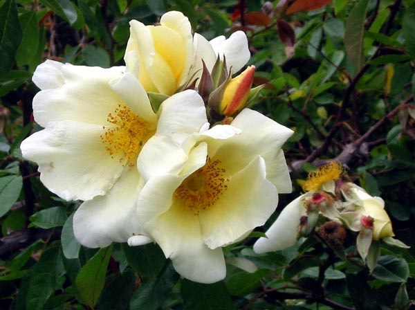 Large, single flowered, sulphur yellow flowers with wide, elegant petals and amber stamens. No other climbing rose reflowers so well and is better resistant to disease as this rose. Do not prune except to remove old branches. Scented.
