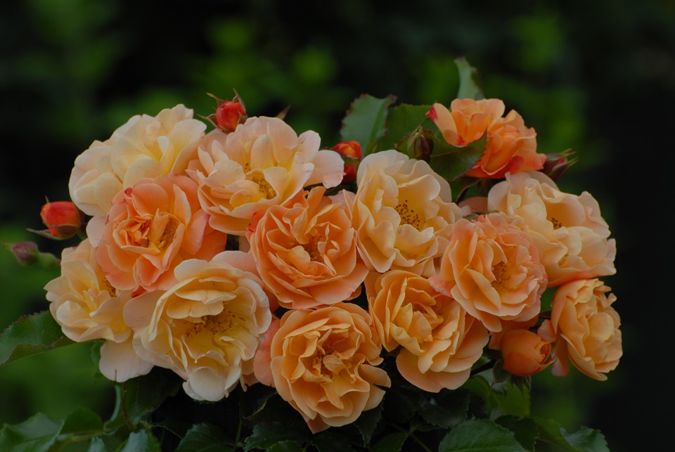 Flower Carpet Sedana rose, absolutely disease-free and long-lasting. Glossy dark green leathery leaves. Medium sized half full flowers in a beautiful cream orange color.