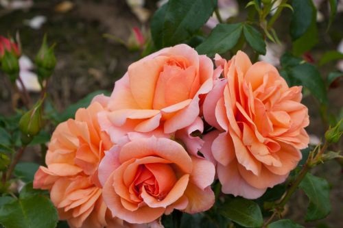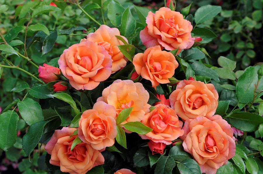 This spray rose has medium-sized, double flowers and an apricot yellow
