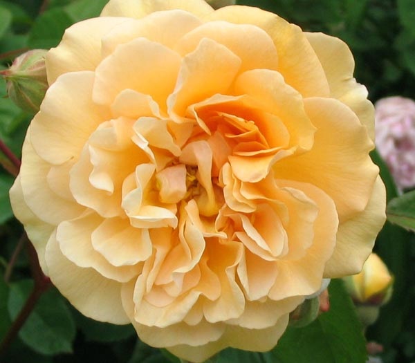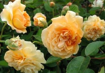 One of the best musk roses that even flowers twice. Medium size, full flowers in big clusters in a beautiful warm apricot yellow colour. Slow growing and with lovely dark green leaves, sometimes tropical luxuriance. Tea rose scent.