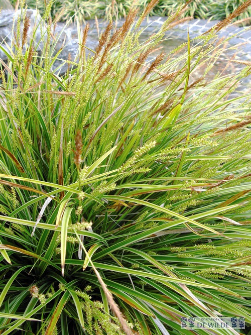 Carex morrowii 'Variegata' Bekende wintergroene soort met een dunne witte rand. Een van de best wintergroene soorten in de schaduw en halfschaduw. Wordt tot 30 cm hoog. Niet geschikt voor volle zon.