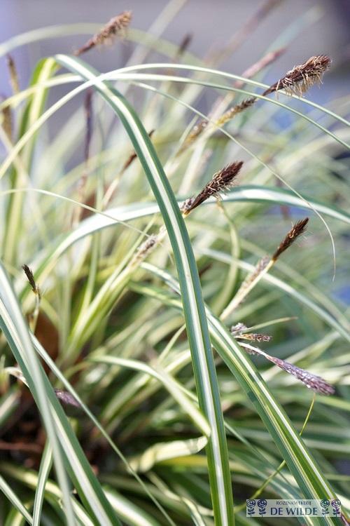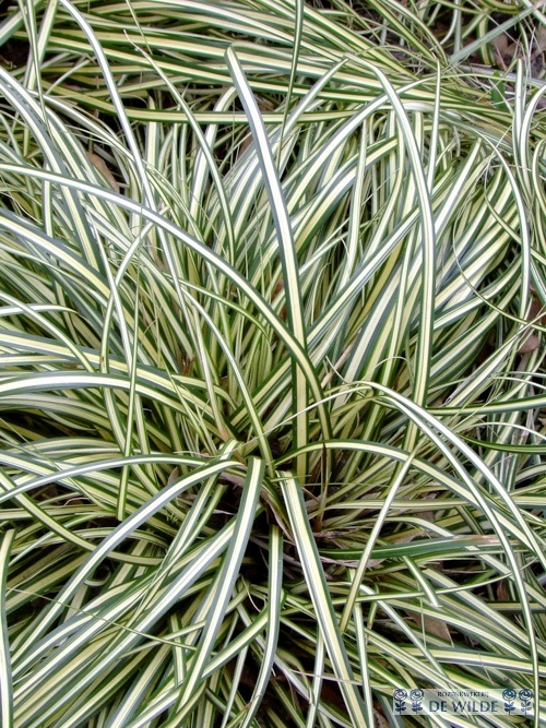 De 'Carex oshimensis Evergold' is gemakkelijk te herkennen door middel van het opvallende blad. Het blad is smal, groen aan de randen en wit / geel in het midden van het blad. De plant wordt ongeveer 30 cm. hoogte. De favoriete standplaats van deze plant is in de halfschaduw en begint met bloeien van mei tot en met juli. Deze soort kan worden toegepast in groepen of als solitair en is ook zeer geschikt voor in pot. Blijft groen gedurende de winter.
