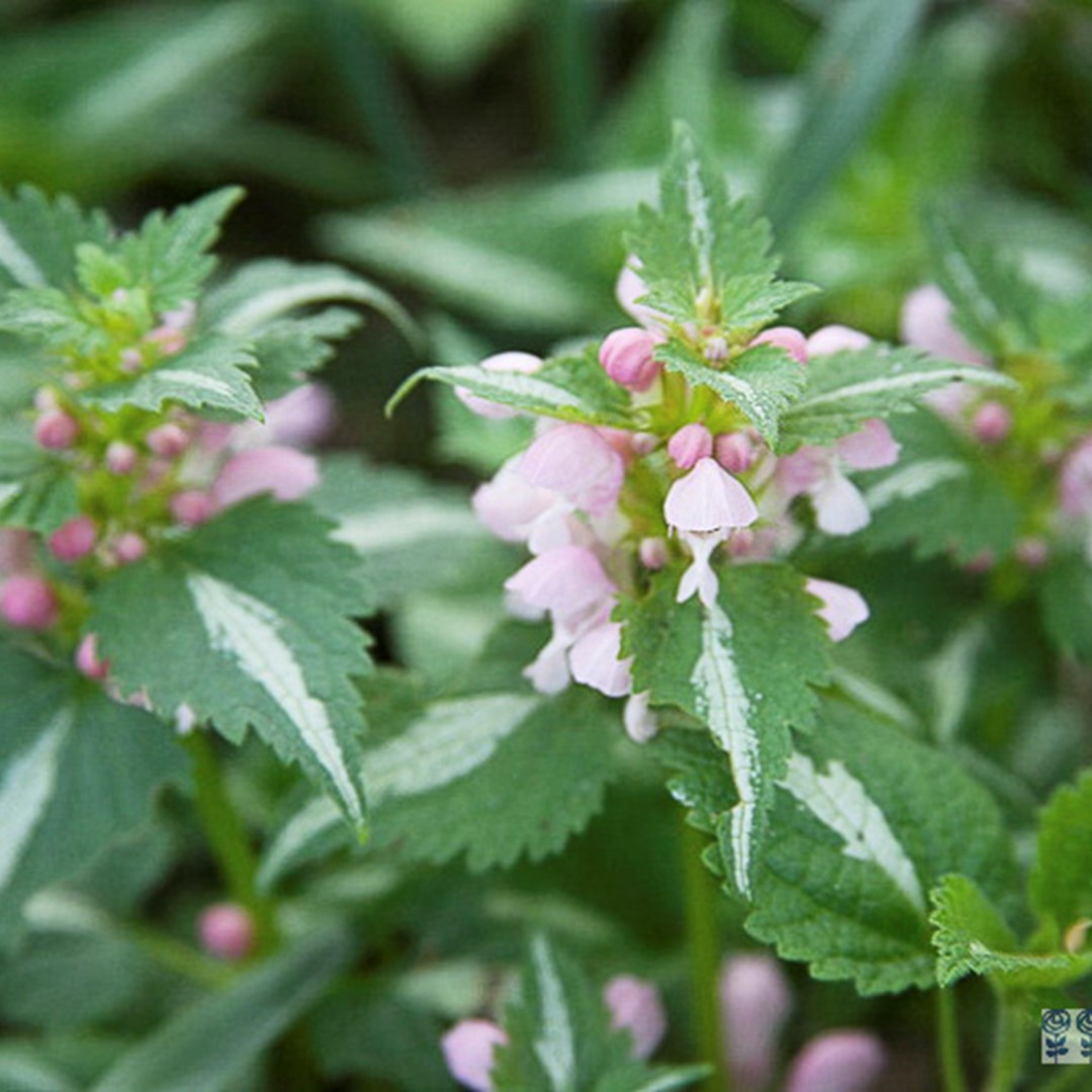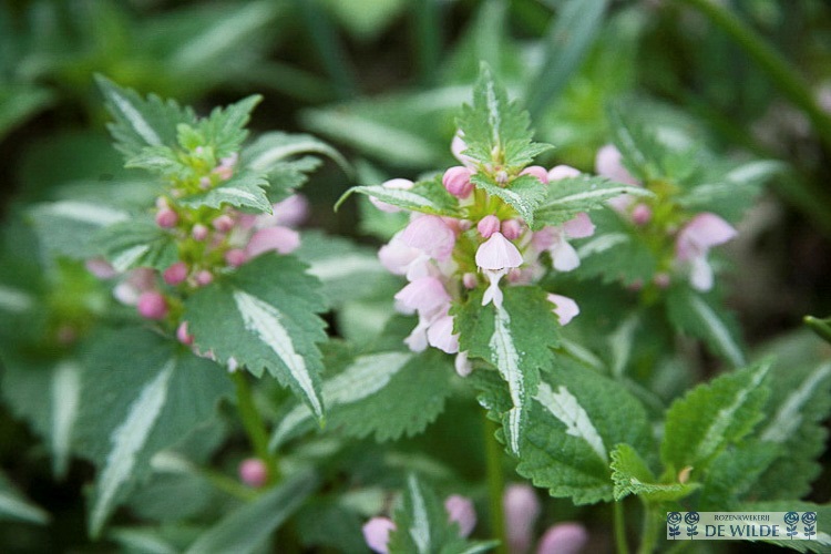Lamium maculatum Shell Pink heeft wit/groen gevlekt blad wat hem uniek maakt.